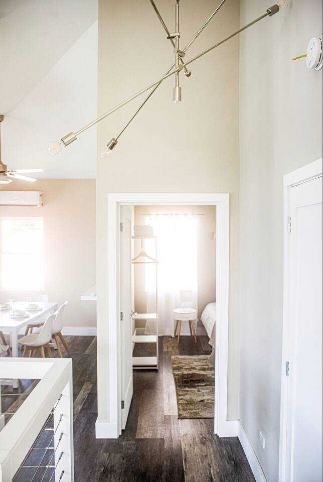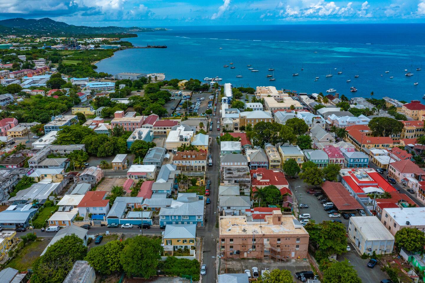 This upstairs retreat, set within a recently restored building, blends historic charm with modern ease. The unit features a king bedroom with en suite bath, plus an additional half bath for convenience. Enjoy a spacious living room and dining area, a hotel-style kitchenette equipped with an air fryer, microwave, mini fridge, and coffee maker. A private back deck perfect for relaxing after exploring town, the boardwalk, and our crucian beaches! This listing is available with other units within the same building if you are looking for more space.